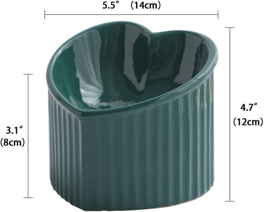 Dark Green Ceramic Raised Cat Bowls, Tilted Elevated Food or Water Bowls, Stress Free, Backflow Prevention, Dishwasher and Microwave Safe, Lead & Cadmium Free
